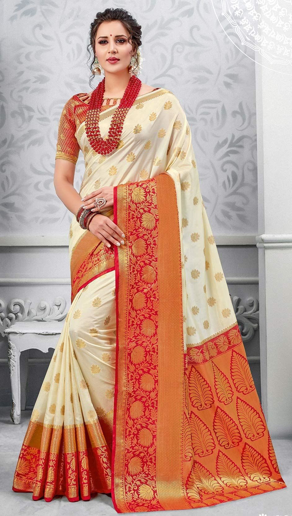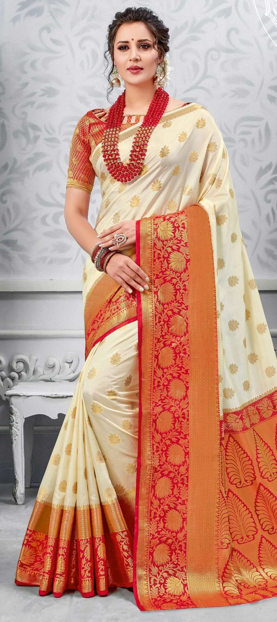 White and Off White color Saree in Silk, Tussar Silk fabric with Weaving work