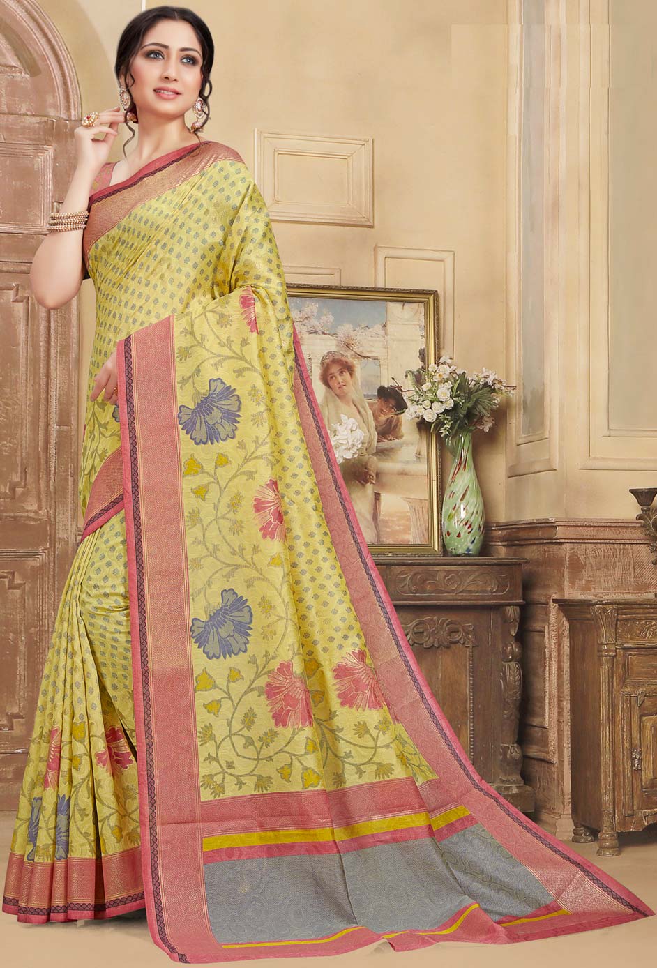 in Yellow with Weaving work