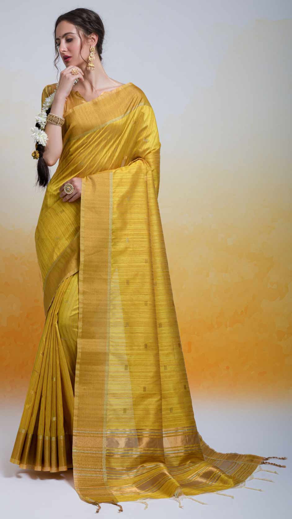 Yellow color Saree in Silk, Tussar Silk fabric with Weaving work