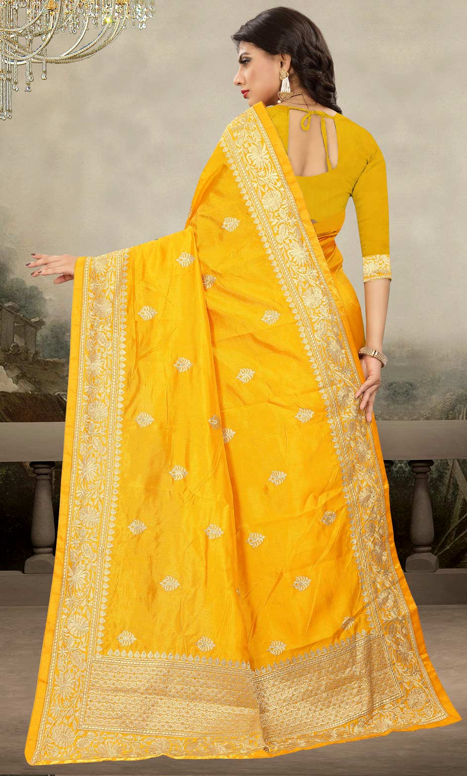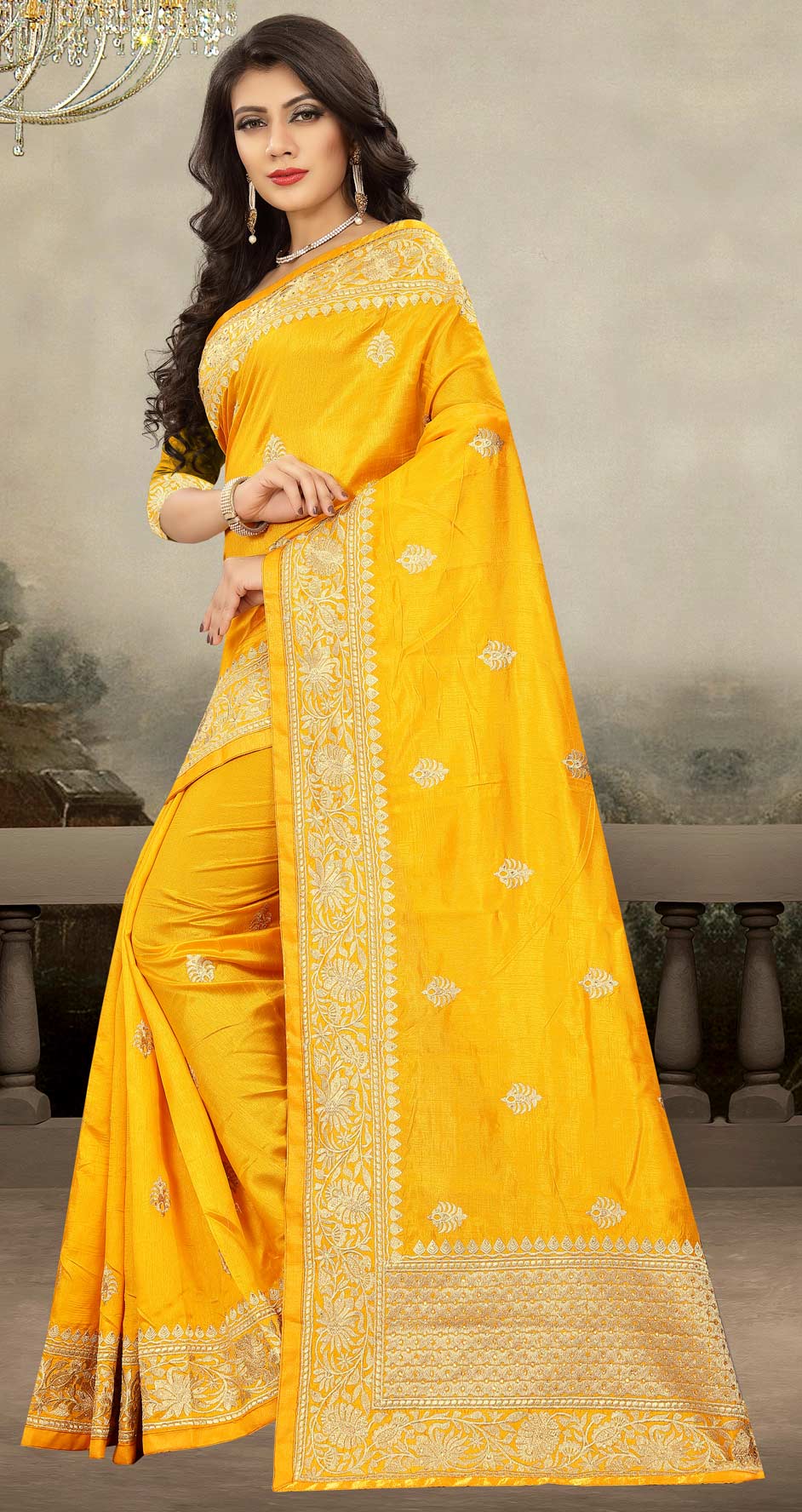 Yellow color Saree in Art Silk, Silk fabric with Embroidered, Thread, Zari work