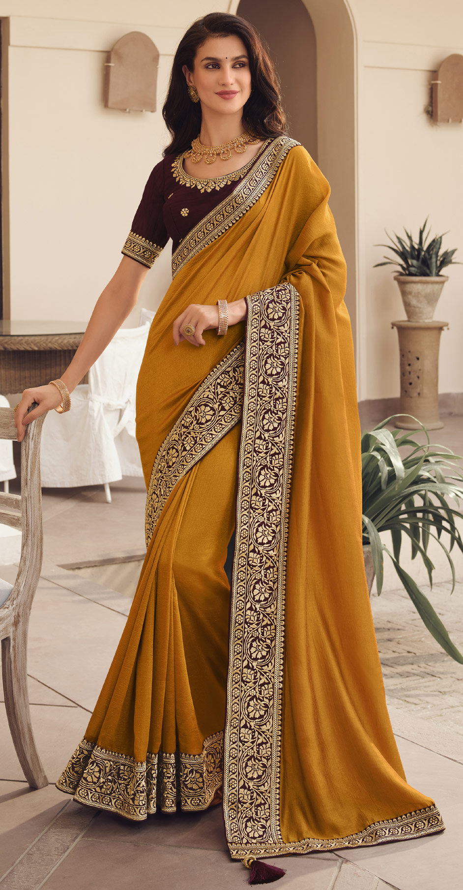 in Yellow with Zari work