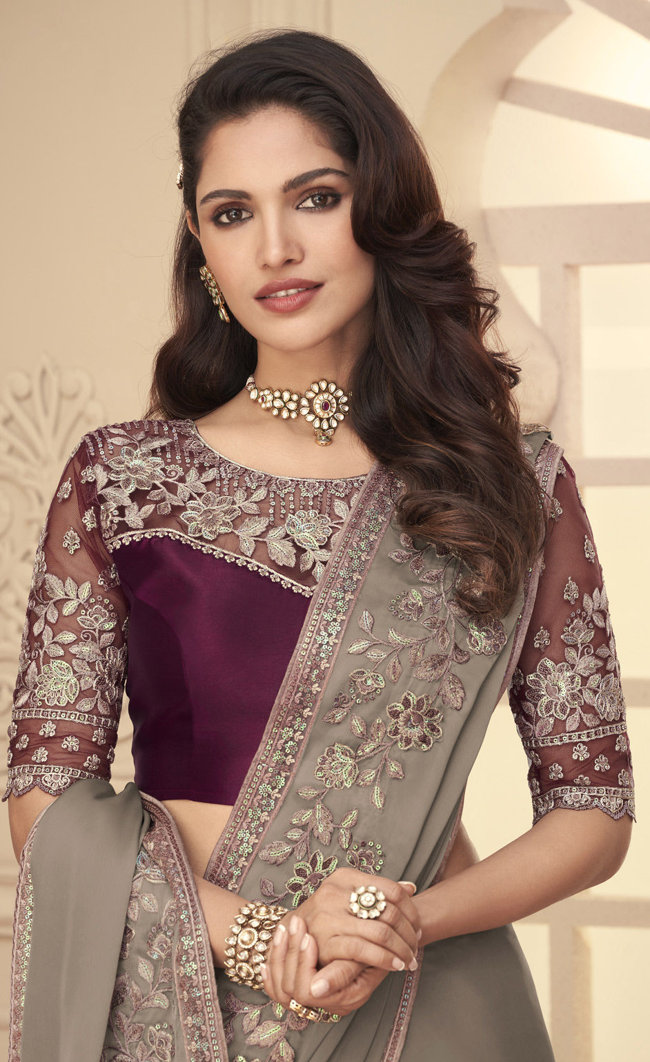 in Black and Grey with Thread work