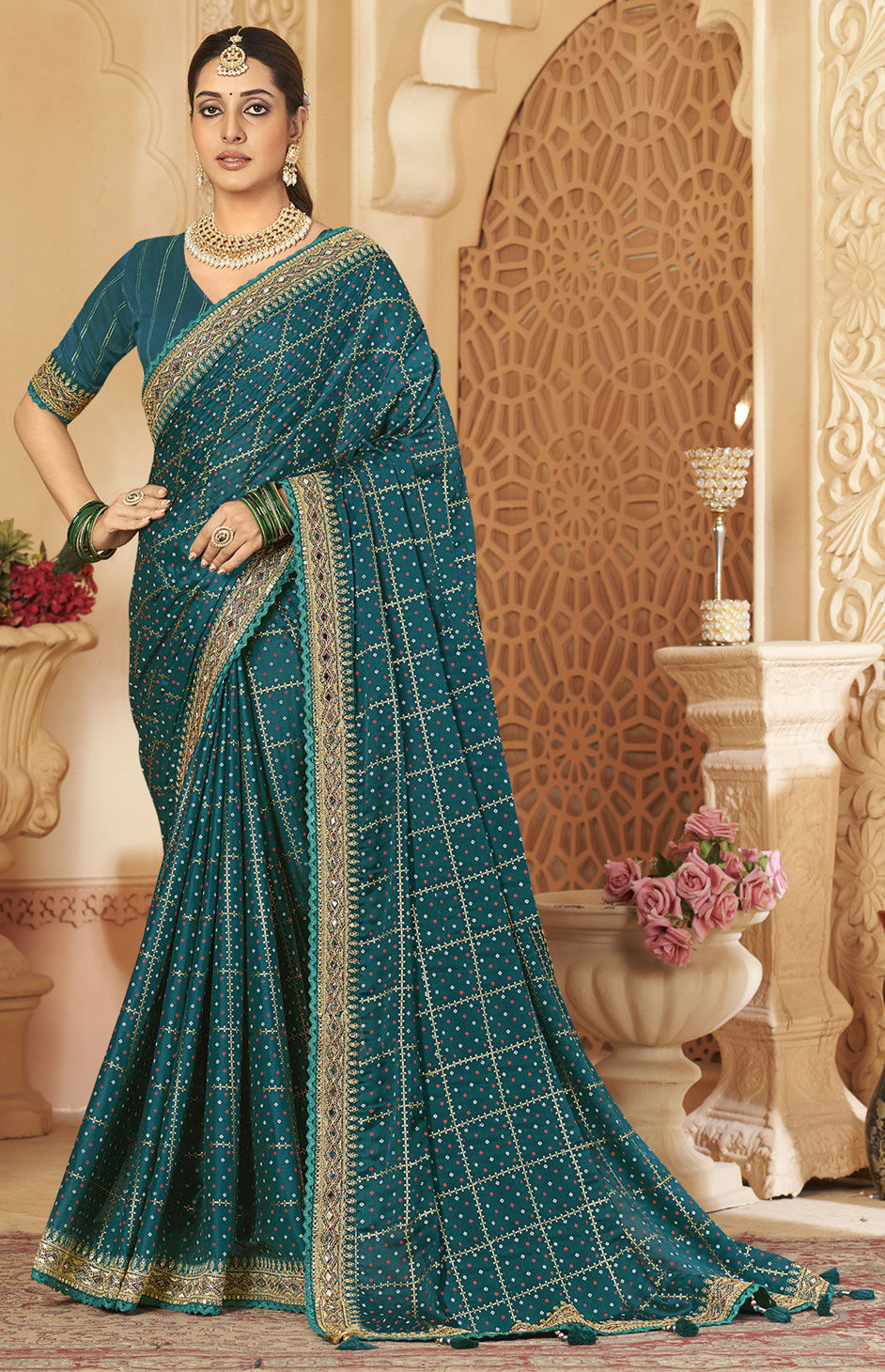 Blue color Saree in Art Silk, Silk fabric with Bandhej, Embroidered, Mirror, Printed, Resham, Sequence, Zari work