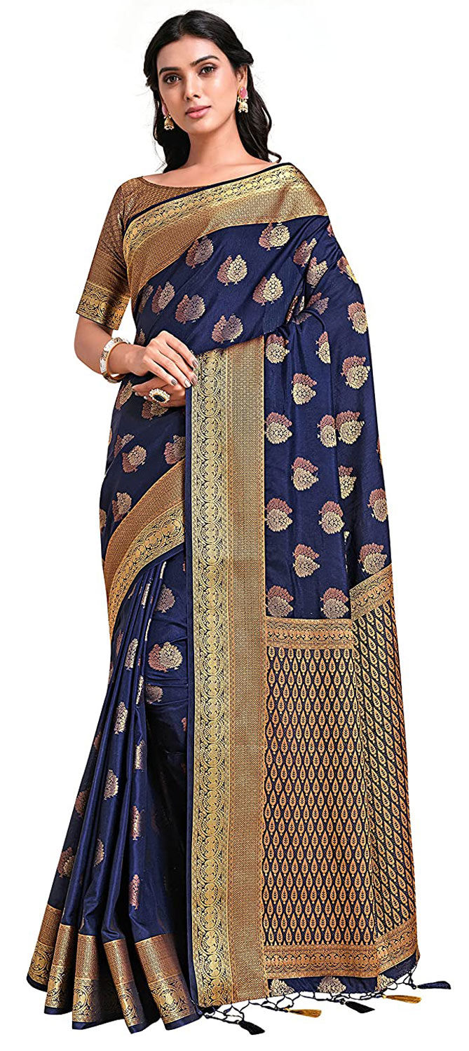 in Blue with Zari work