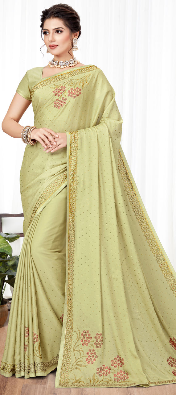 Gold color Saree in Art Silk, Silk fabric with Stone work