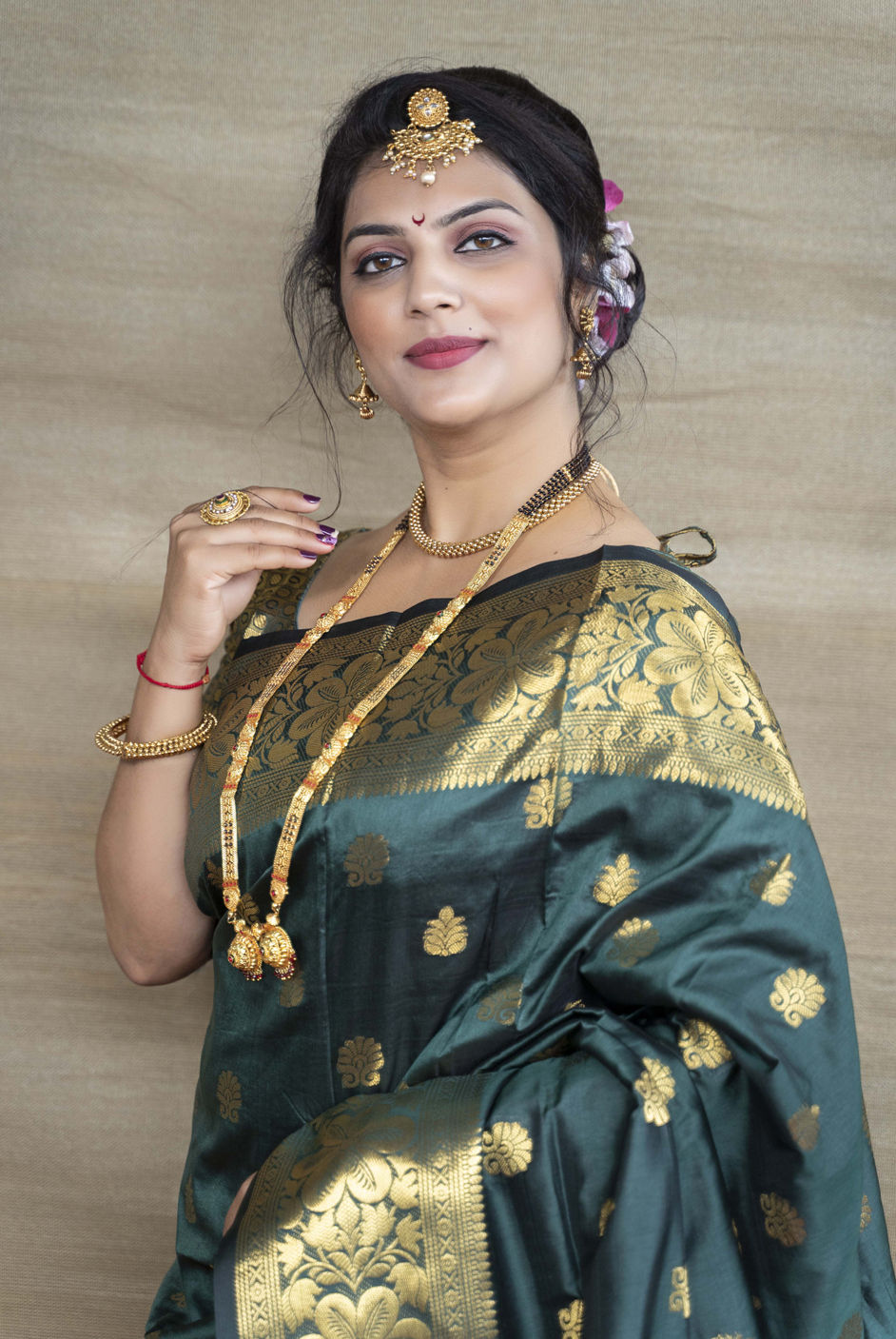 Green color Saree in Art Silk, Silk fabric with Weaving work