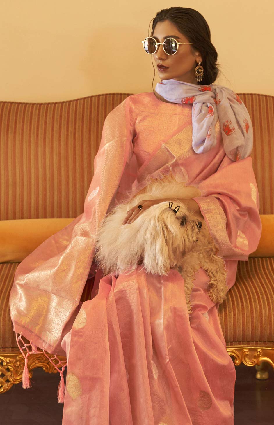 Pink and Majenta color Saree in Organza Silk, Silk fabric with Weaving work
