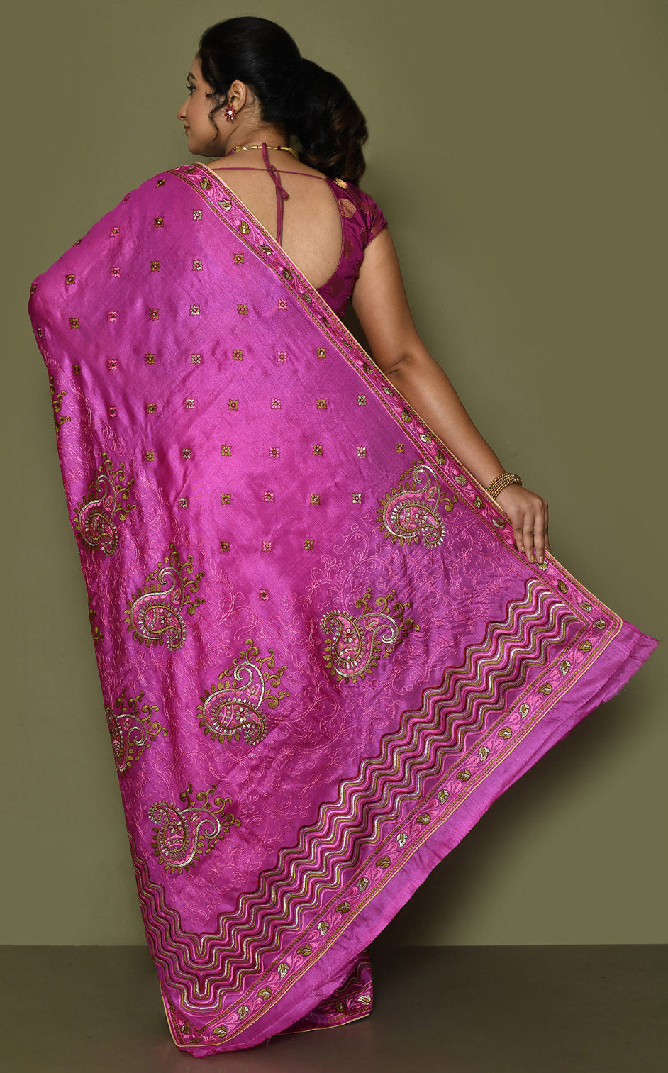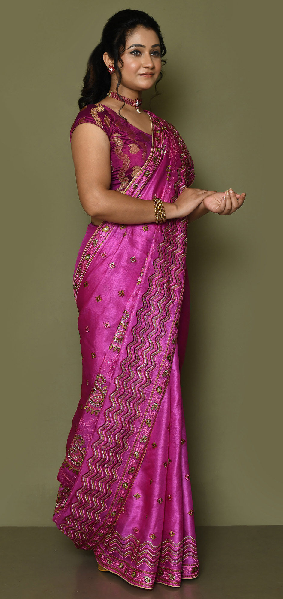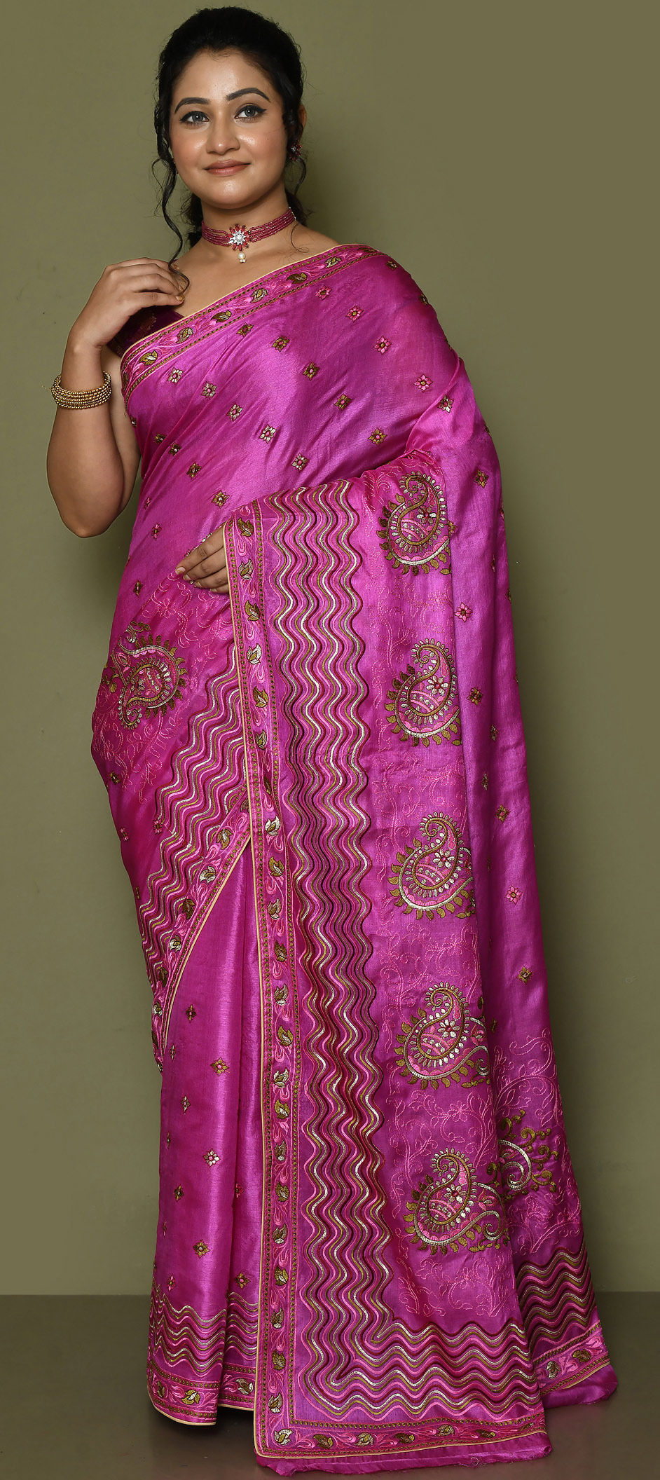 Pink and Majenta color Saree in Banarasi Silk, Silk fabric with Embroidered, Resham, Thread, Zari work