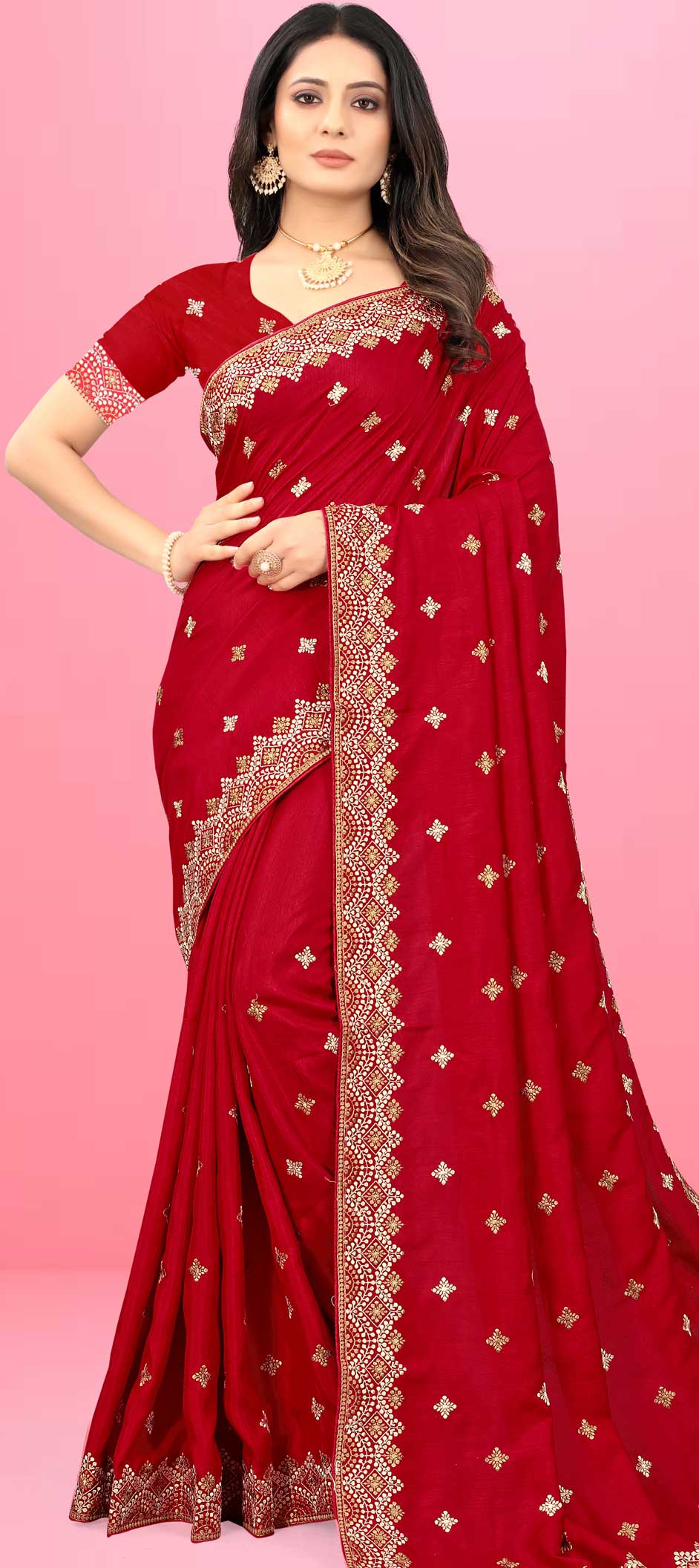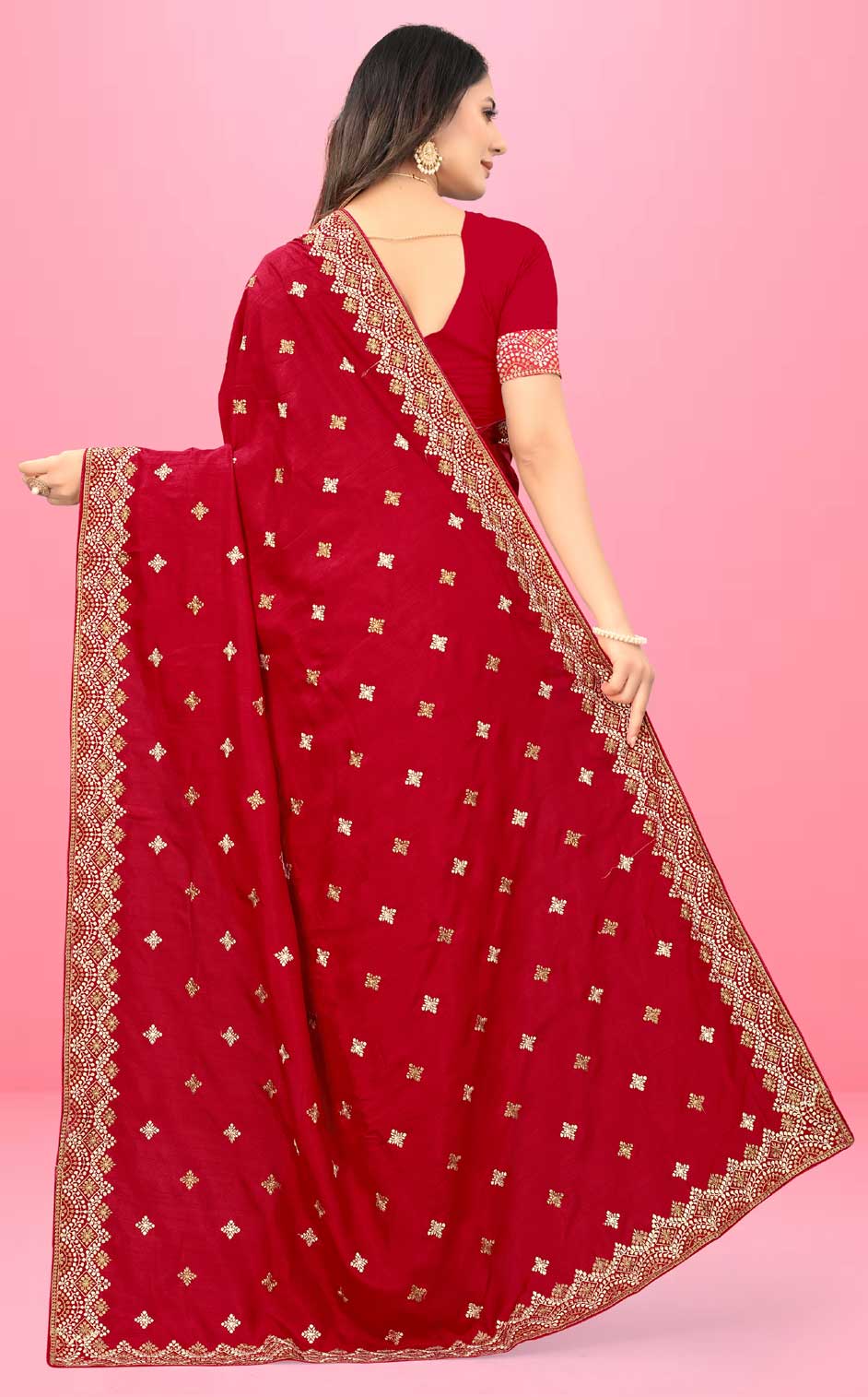 in Red and Maroon with Thread work