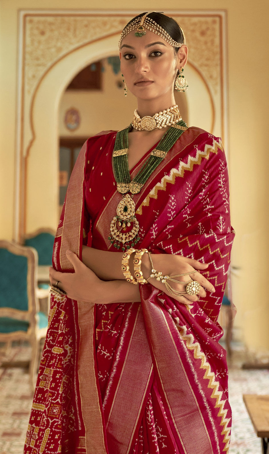 in Red and Maroon with Weaving work