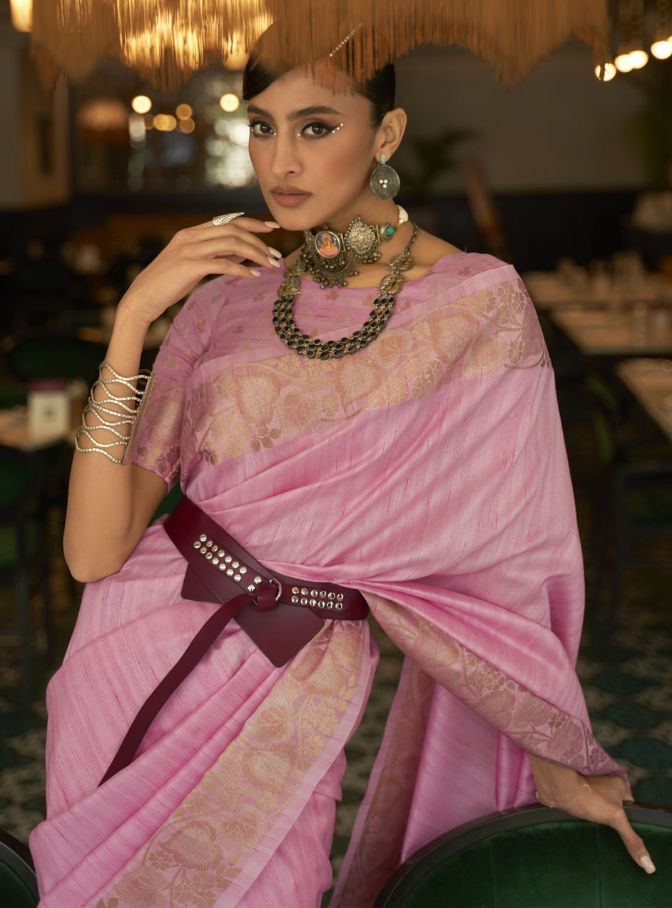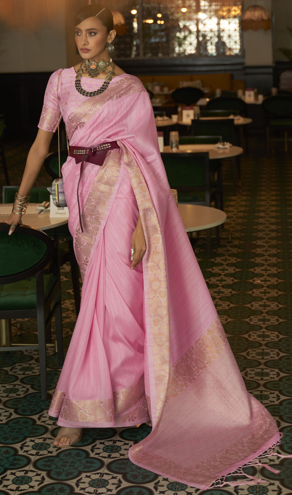 Pink and Majenta color Saree in Silk, Tussar Silk fabric with Weaving work