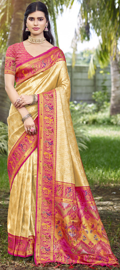 Beige and Brown color Saree in Art Silk fabric with Weaving, Zari work