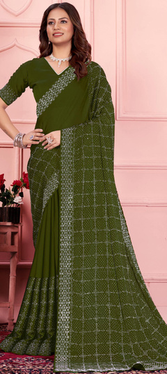 Green color Saree in Art Silk fabric with Fancy Work work