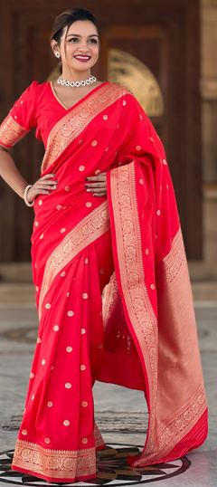 Red and Maroon color Saree in Banarasi Silk fabric with Weaving work