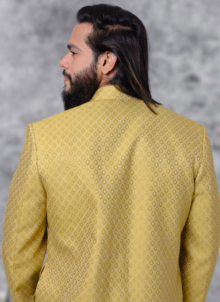Yellow color Sherwani in Jacquard fabric with Weaving work