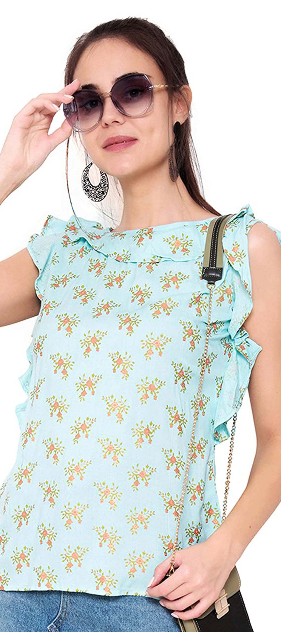 Blue color Tops and Shirts in Cotton fabric with Printed work