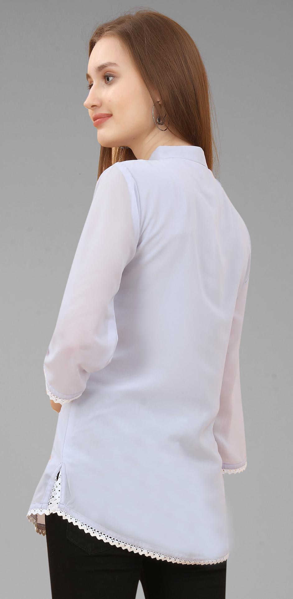 White and Off White color Tops and Shirts in Georgette fabric with Lace, Thread work