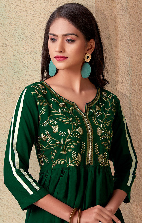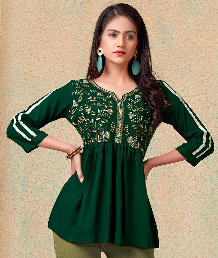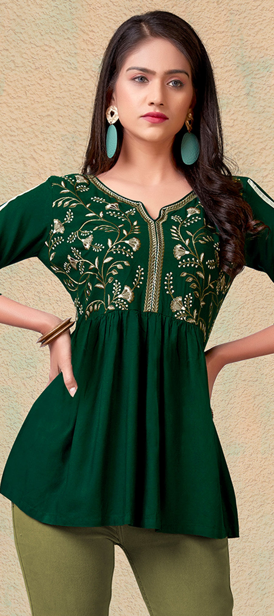 Green color Tops and Shirts in Rayon fabric with Embroidered, Thread work