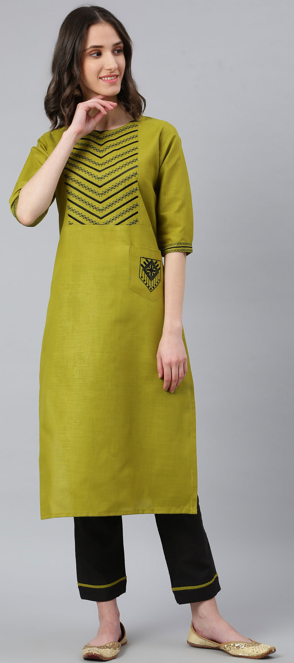 in Green with Resham work