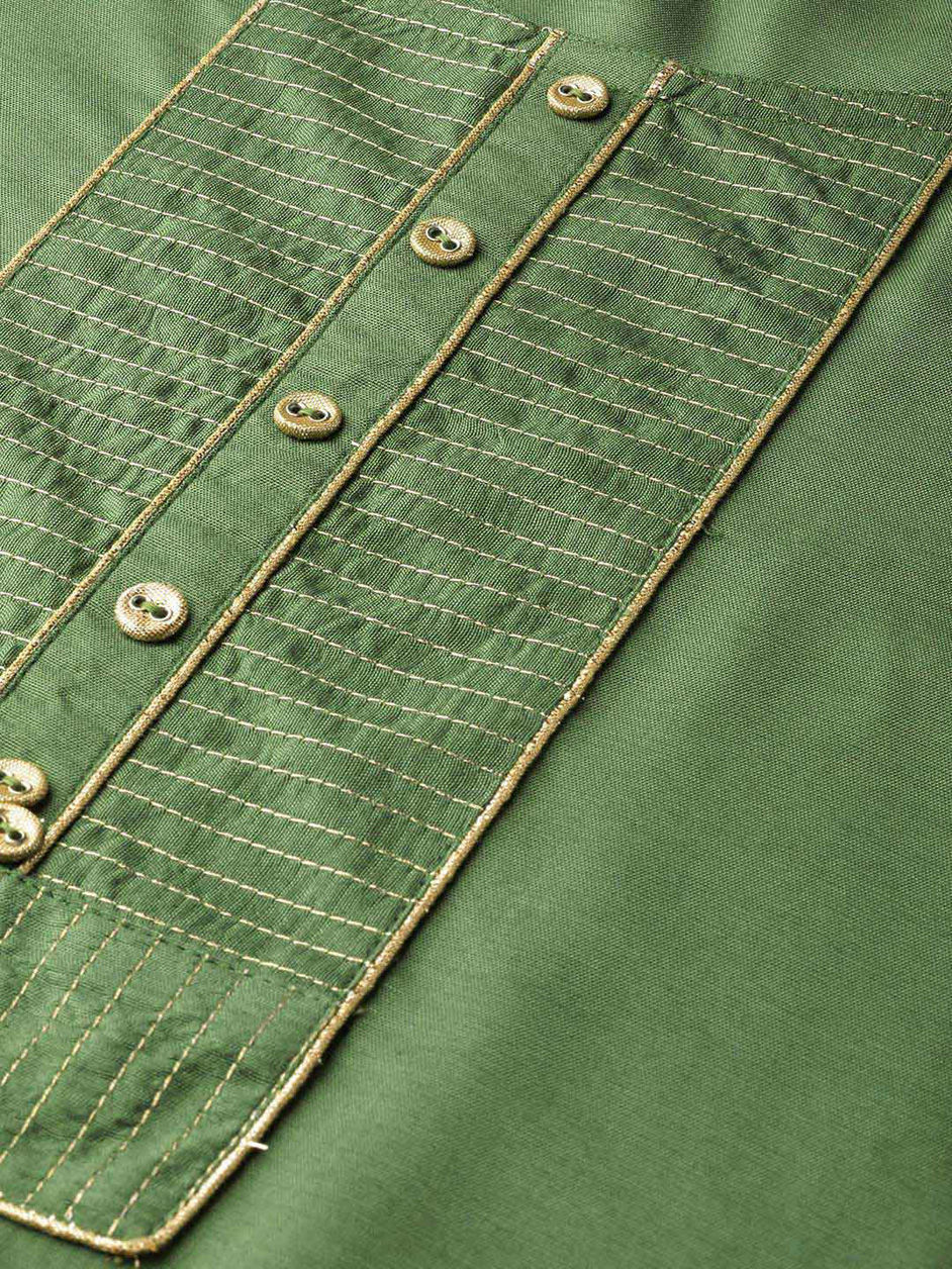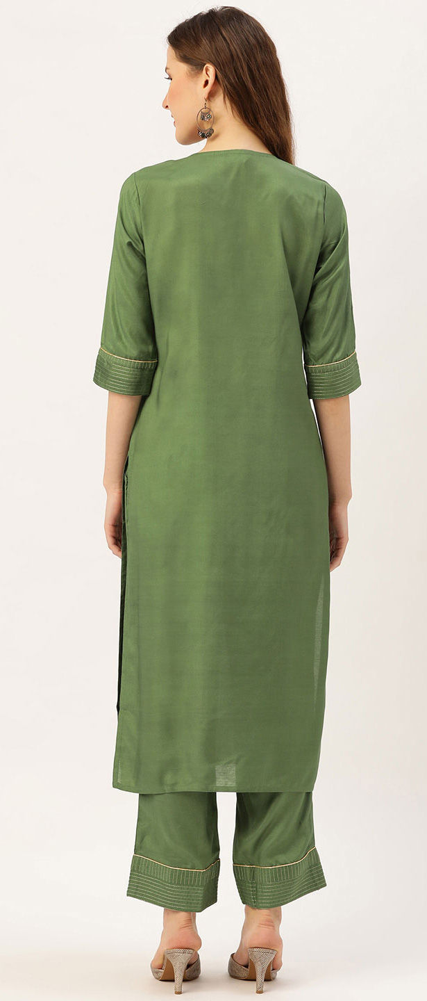 Green color Tunic with Bottom in Blended fabric with Thread work