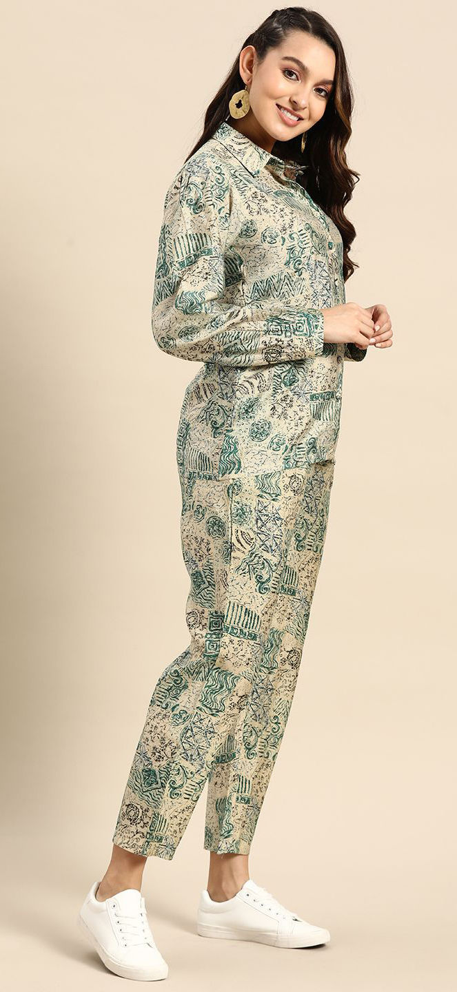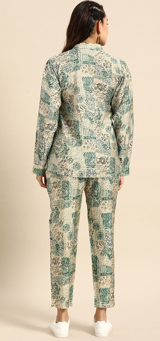 Green color Tunic with Bottom in Chanderi Silk fabric with Printed work