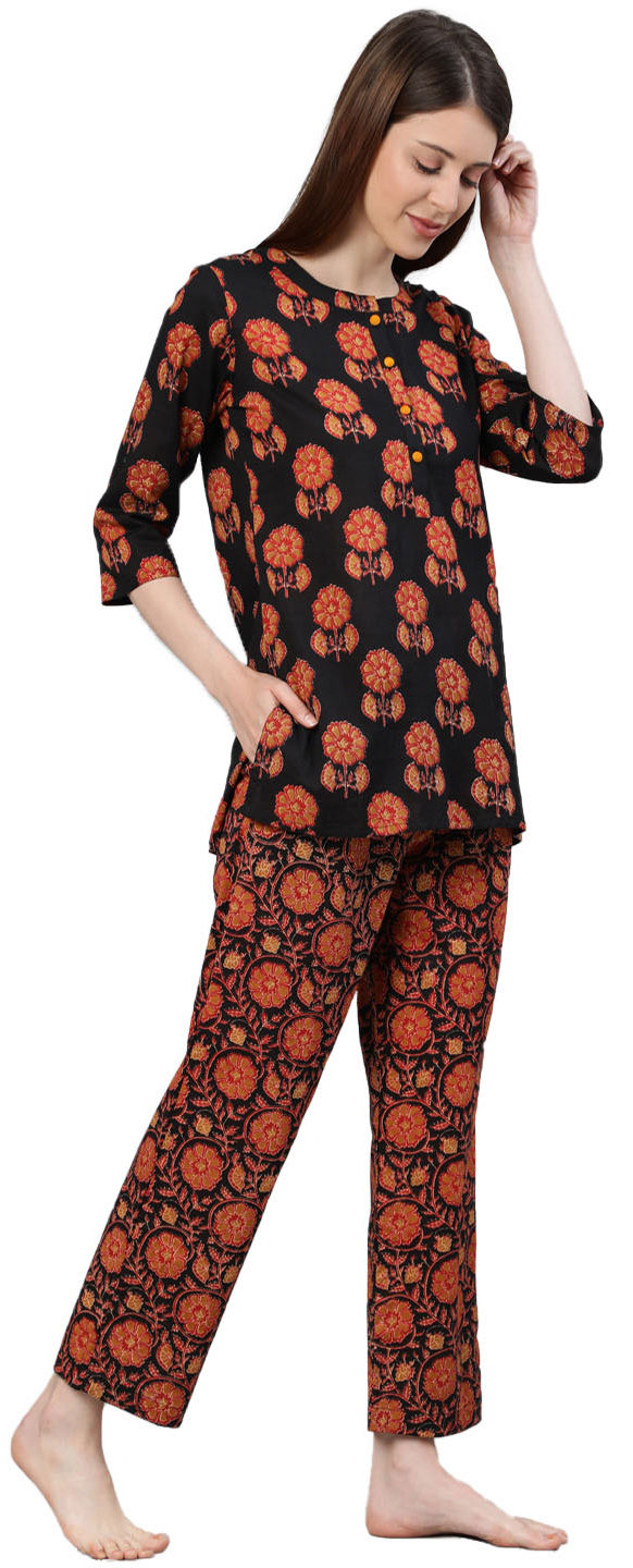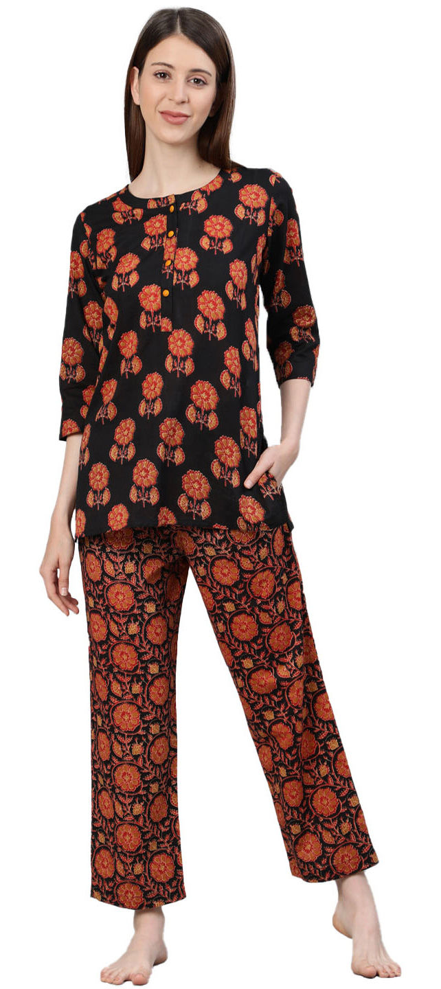 Black and Grey color Tunic with Bottom in Cotton fabric with Printed work
