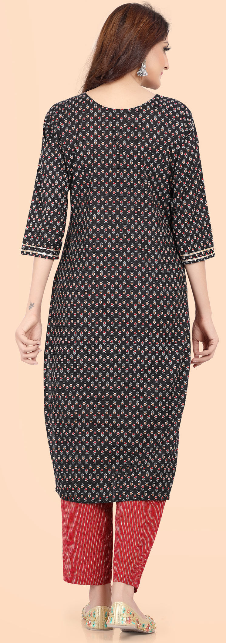 Black and Grey color Tunic with Bottom in Cotton fabric with Printed work