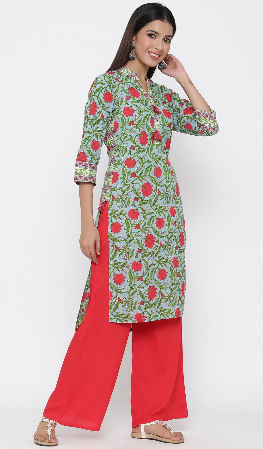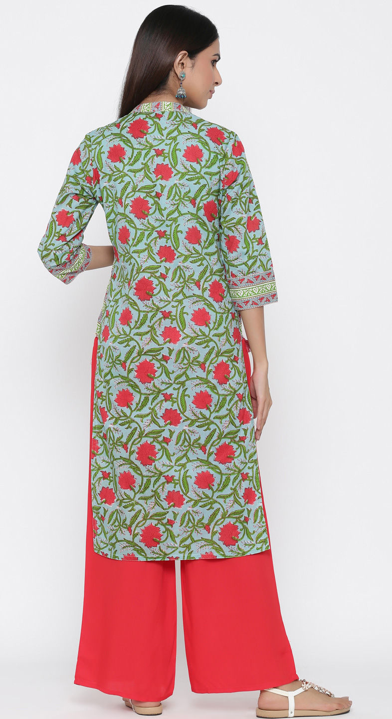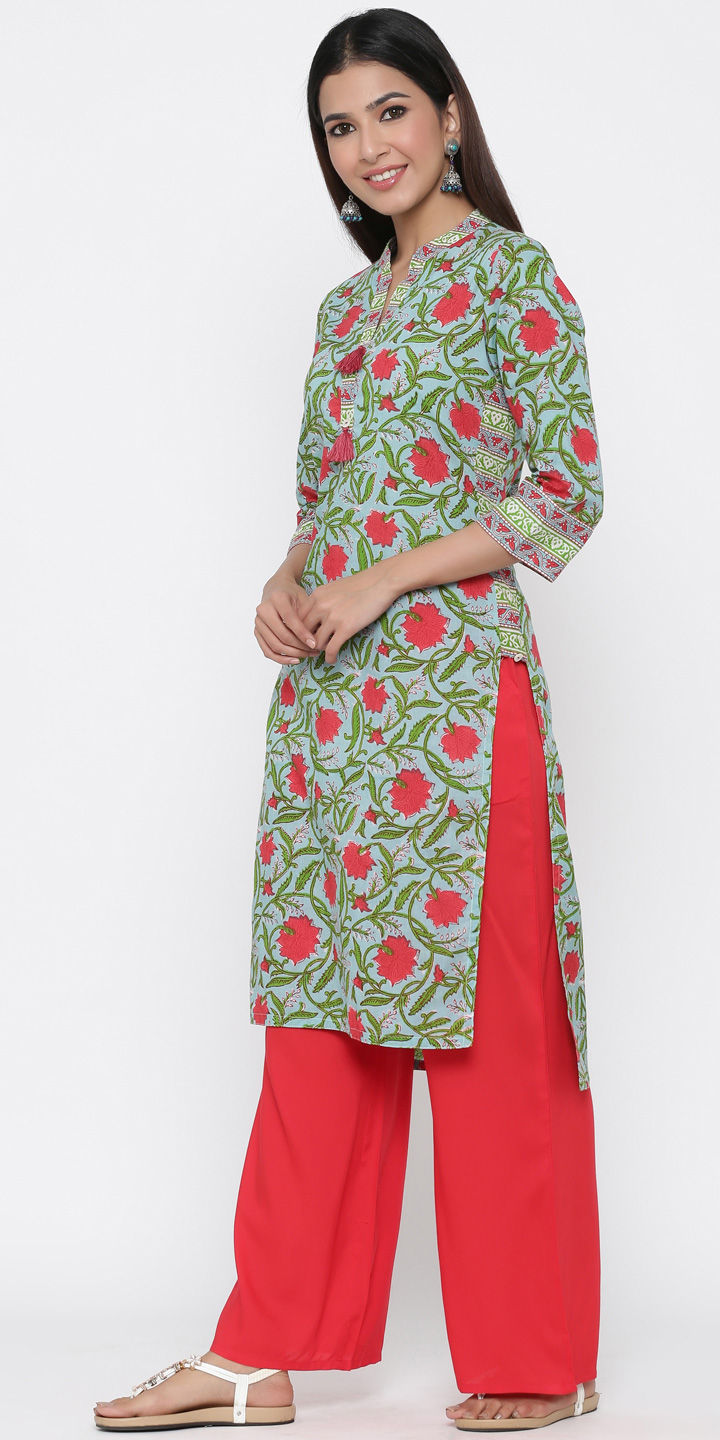Green color Tunic with Bottom in Cotton fabric with Floral, Printed work
