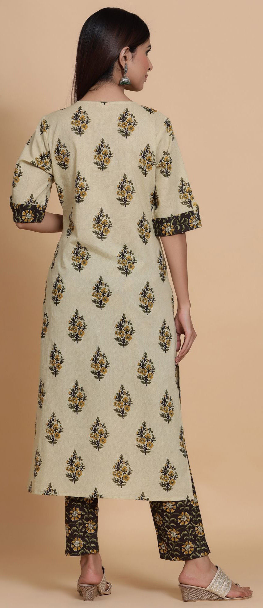 Green color Tunic with Bottom in Cotton fabric with Printed work