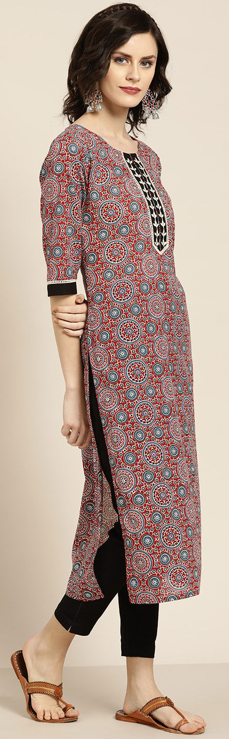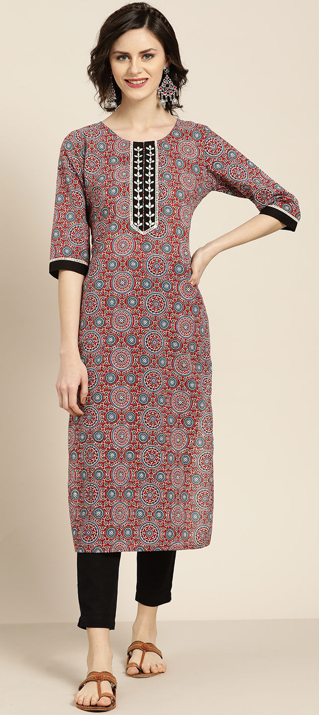 Red and Maroon color Tunic with Bottom in Cotton fabric with Printed work