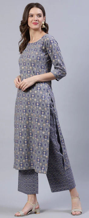 Black and Grey color Tunic with Bottom in Cotton fabric with Printed work