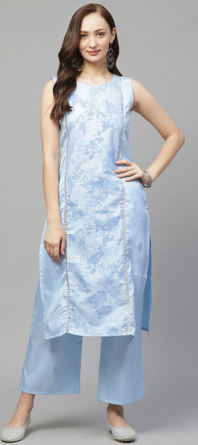 Blue color Tunic with Bottom in Poly Silk fabric with Printed work