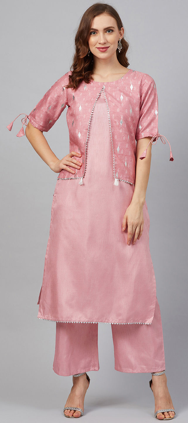 Pink and Majenta color Tunic with Bottom in Poly Silk fabric with Lace work