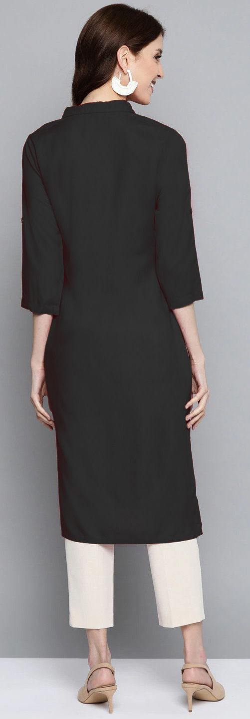 Black and Grey color Tunic with Bottom in Rayon fabric with Embroidered work