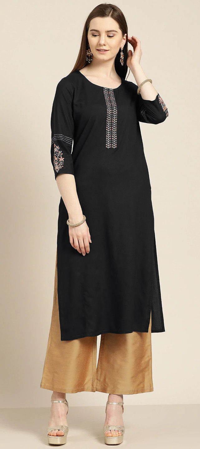 Black and Grey color Tunic with Bottom in Rayon fabric with Embroidered work