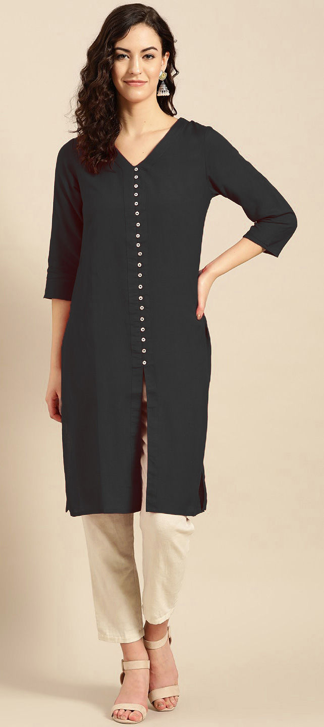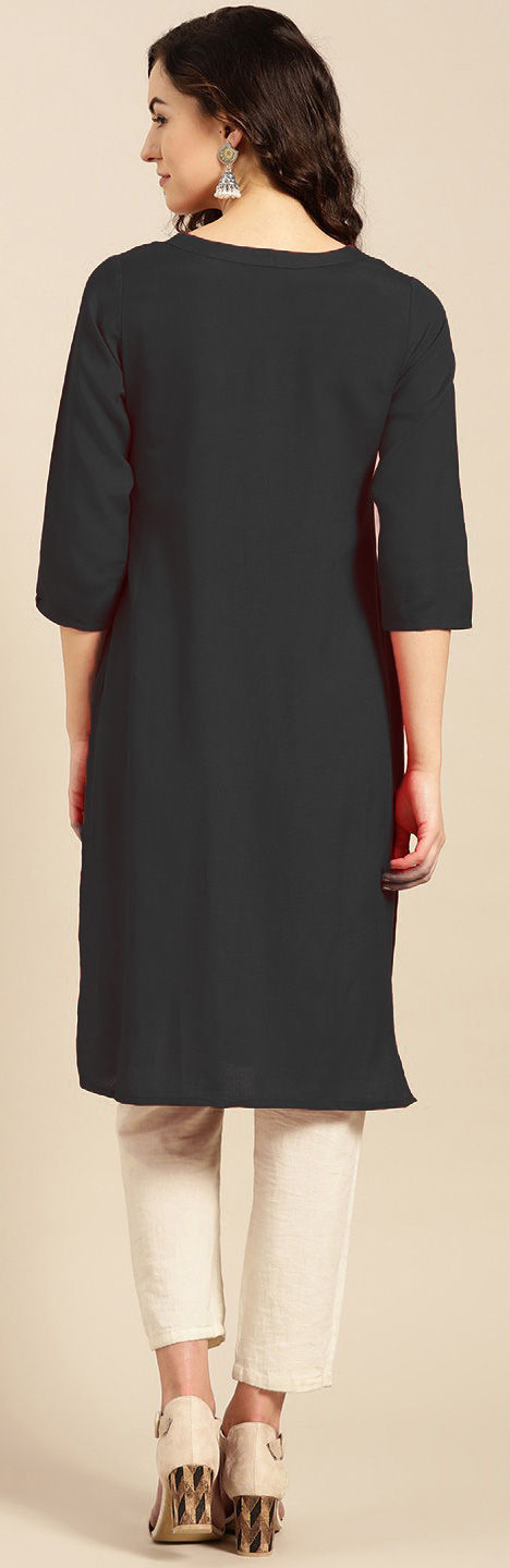 Black and Grey color Tunic with Bottom in Rayon fabric with Embroidered work