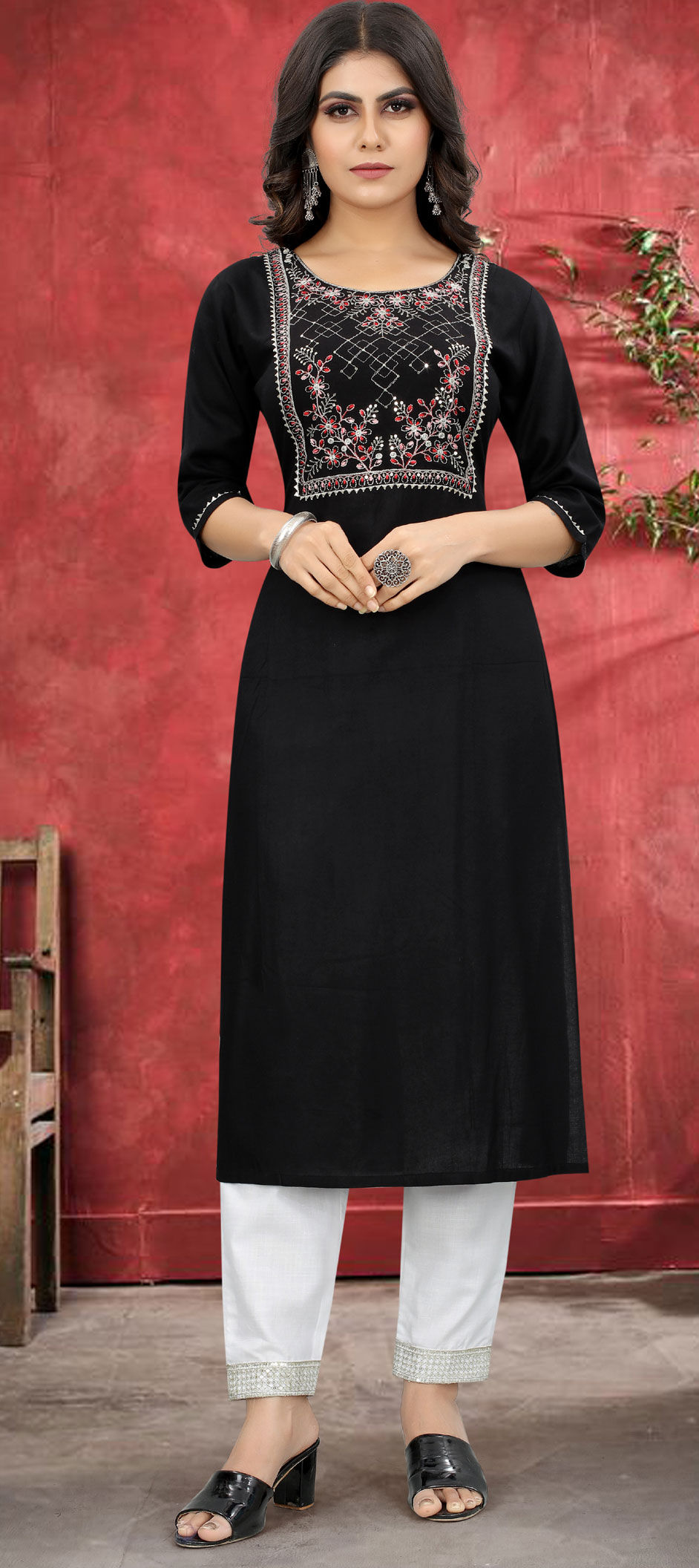 Black and Grey color Tunic with Bottom in Rayon fabric with Embroidered, Sequence work