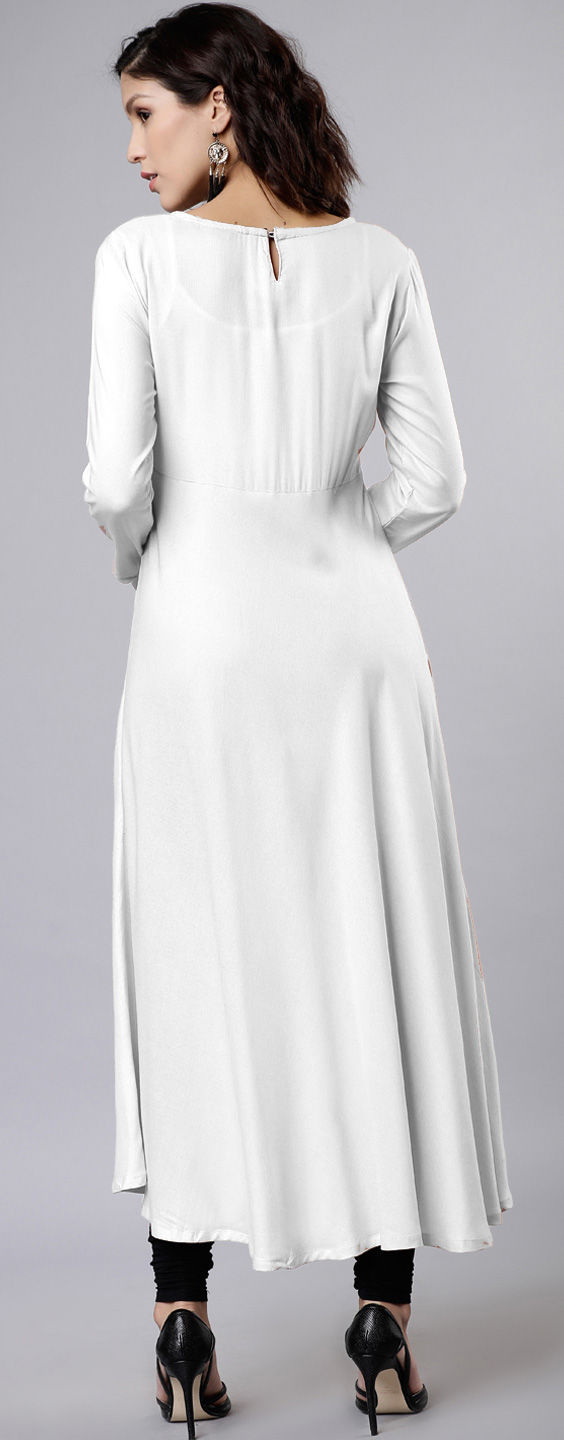 White and Off White color Tunic with Bottom in Rayon fabric with Embroidered work