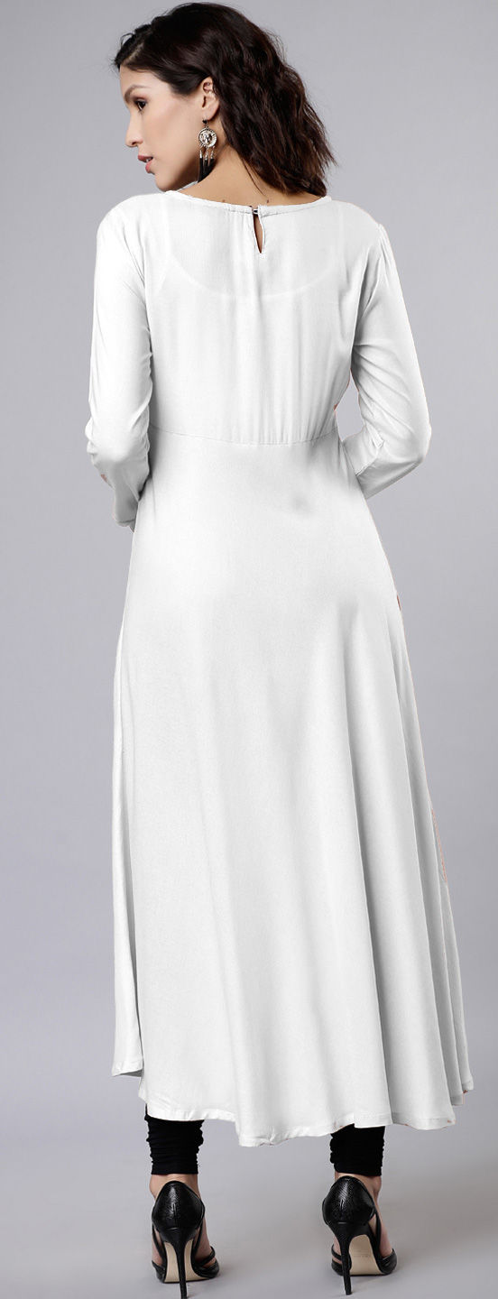 White and Off White color Tunic with Bottom in Rayon fabric with Embroidered work