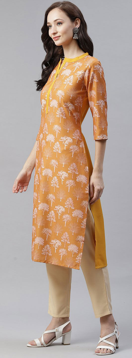 Yellow color Tunic with Bottom in Rayon fabric with Printed work