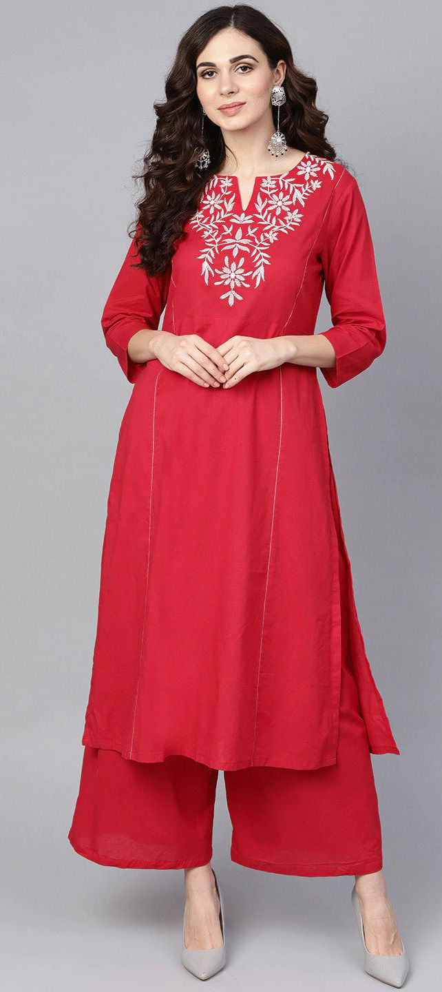Red and Maroon color Tunic with Bottom in Rayon fabric with Embroidered, Thread work