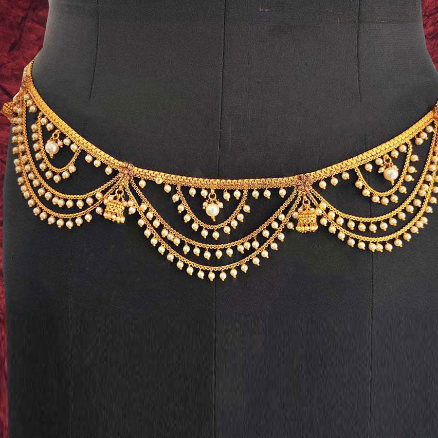Gold Rodium Polish White and Off White color Waist Chain in Metal Alloy studded with Pearl