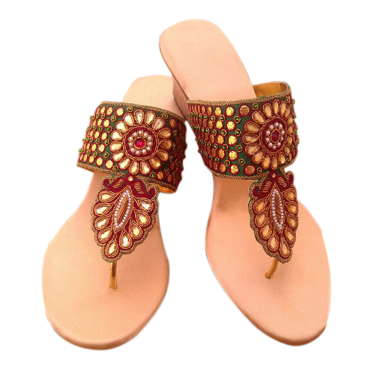 Green, Pink and Majenta color Women Shoes in Raw Dupion Silk, Silk fabric with Kundan, Stone, Thread work